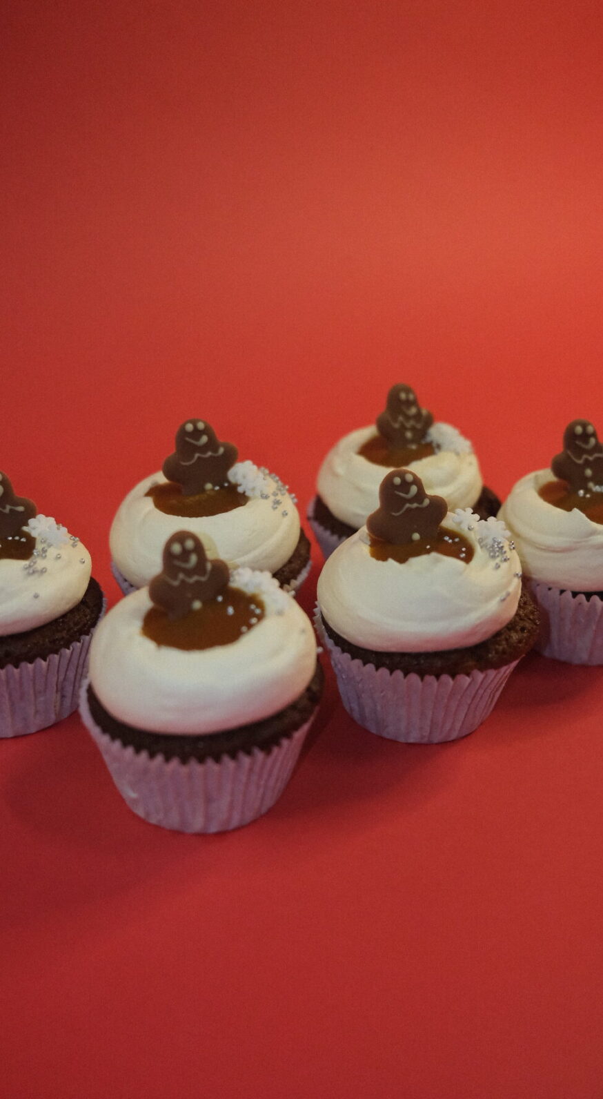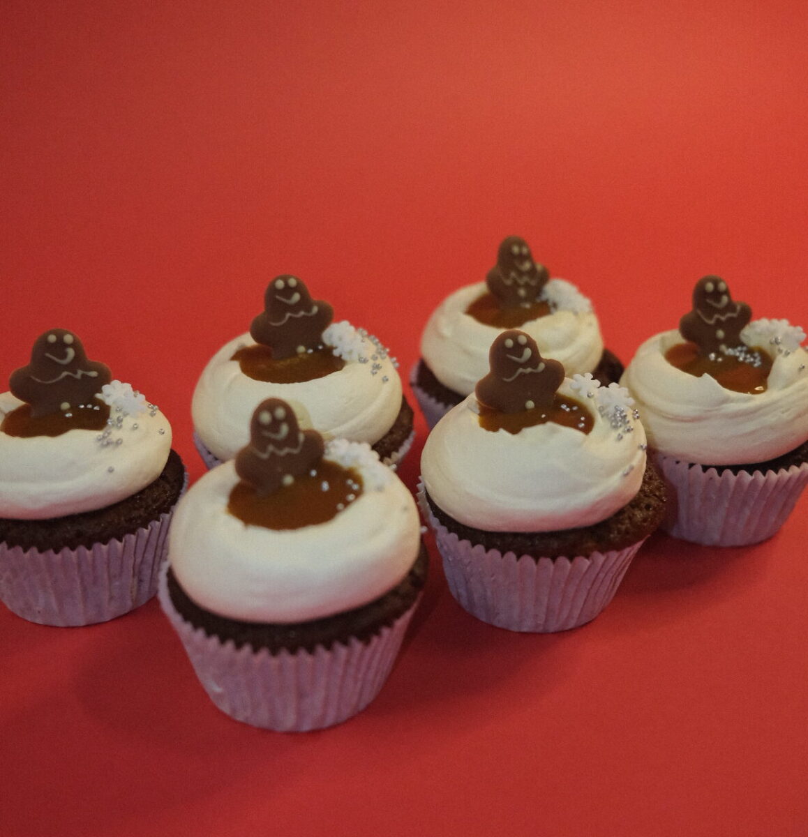 Happy Holidays met deze cupcakes in gingerbread smaak. Opmaak met witte chocolade creme en gezouten caramel.