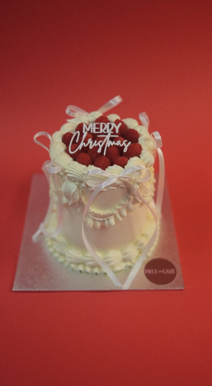 This raspberry christmas cake! Met een witte chocolade creme afwerking, frambozen en een merry christmas tekst bovenop. Een classy christmas cake in vanille smaak met witte chocolade creme en frambozen jam. Een lekkere, feestelijke taart die ook nog eens mooi op tafel staat.